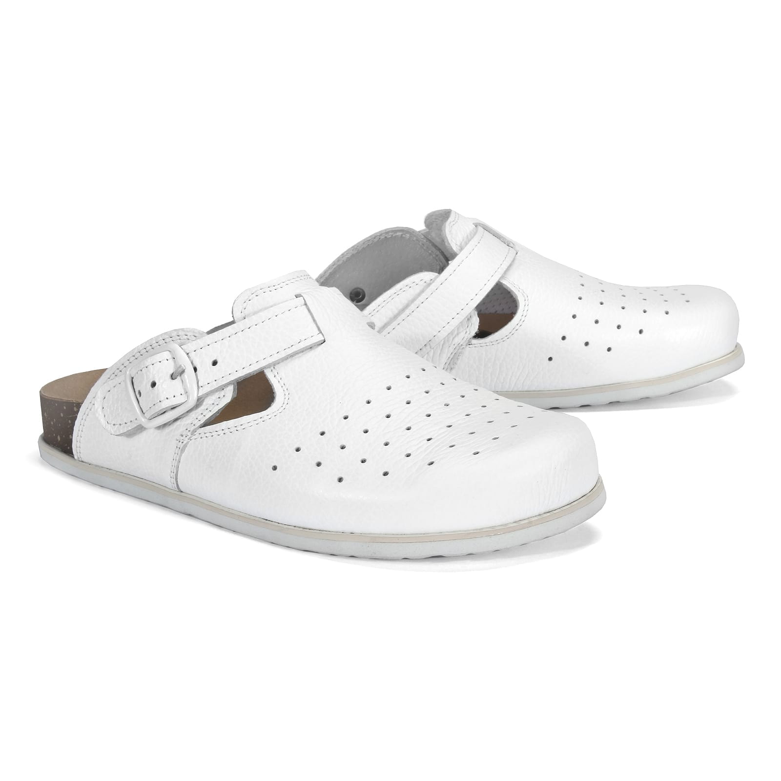 Skórzane Chodaki medyczne BIAŁE